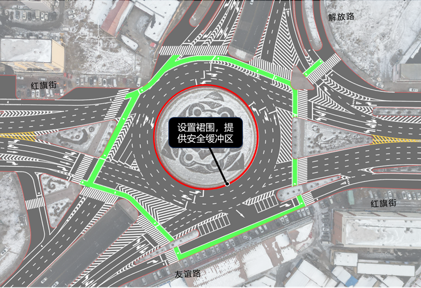 他没有跟着大家挤在左侧车道排队等左转,而是直接从右侧车道超过排队的车辆,开进了环岛之后右转。