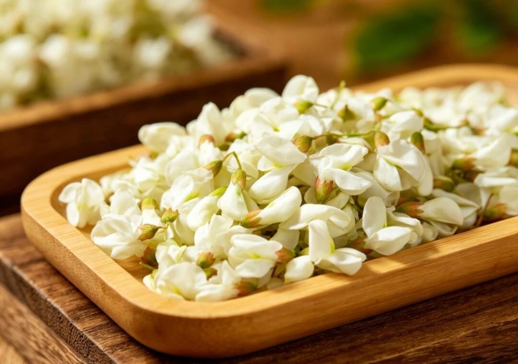 而另一种常见的国槐花(树枝无刺,花朵偏黄绿色,味道微苦),通常只作为药材使用。国槐花的芦丁含量极高,直接食用容易刺激肠胃,引起身体不适,必须经过专业的炮制才能入药。