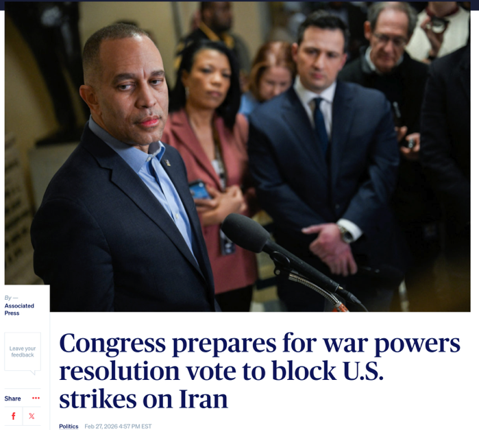 局势的持续恶化,让国会推动战争权力决议案表决的压力越来越大,这份决议也是现阶段议员们能拿出的最有分量的表决方案,而此时,美伊之间的军事冲突已经全面打响。白宫官员同步向国会通报,需要紧急追加专项财政拨款,才能支撑后续战事推进。