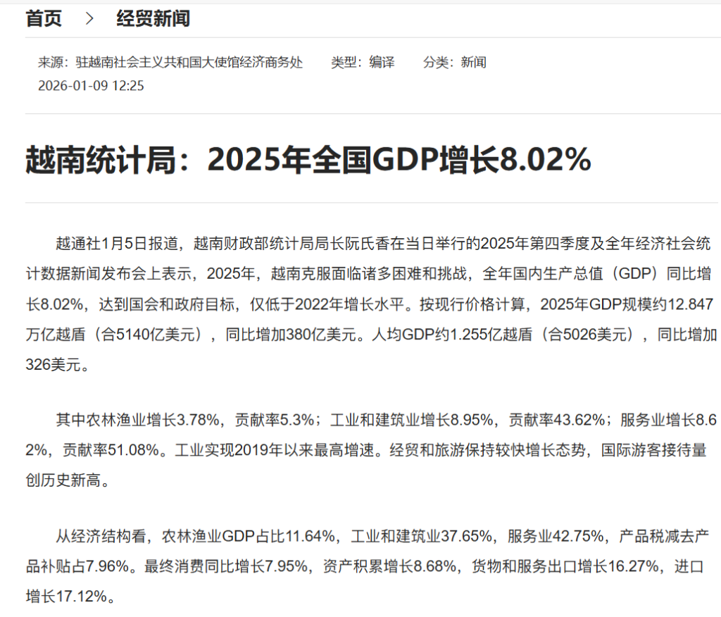 首先是经济成绩单亮眼出炉:越南国家统计局公布,2025年GDP增速飙到8.02%,创下15年来第二高纪录,稳坐亚洲第一的位置。另一条则是越共十四大落下帷幕,新一届领导班子完成“大换血”,近半数高级干部换新,其中不少还是有中国留学经历的专业经济人才。