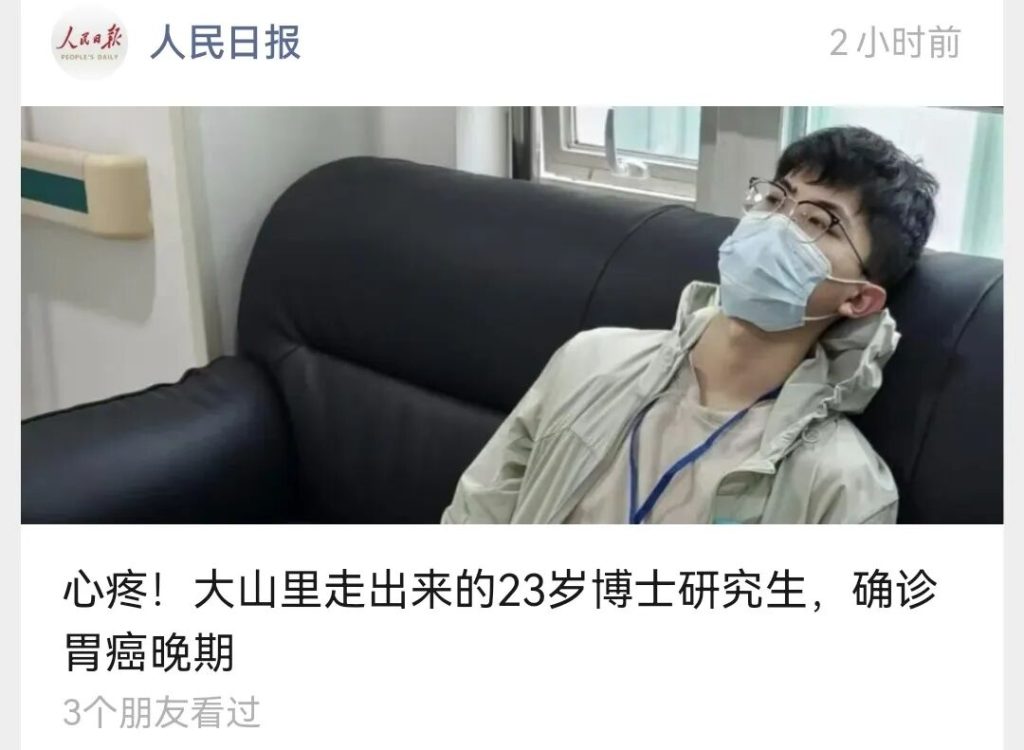 “我从小在云南的大山里长大,放眼望去全是连绵的群山,拼了16年,好不容易考上985高校,还拿到了直博资格,没想到却被胃癌晚期给打了个措手不及。”最近,23岁的张睿在社交平台分享了自己的抗癌日常,他一路逆袭的不易,还有面对重病时的坚强,让无数网友看得心疼不已,也引发了大家的广泛关注。