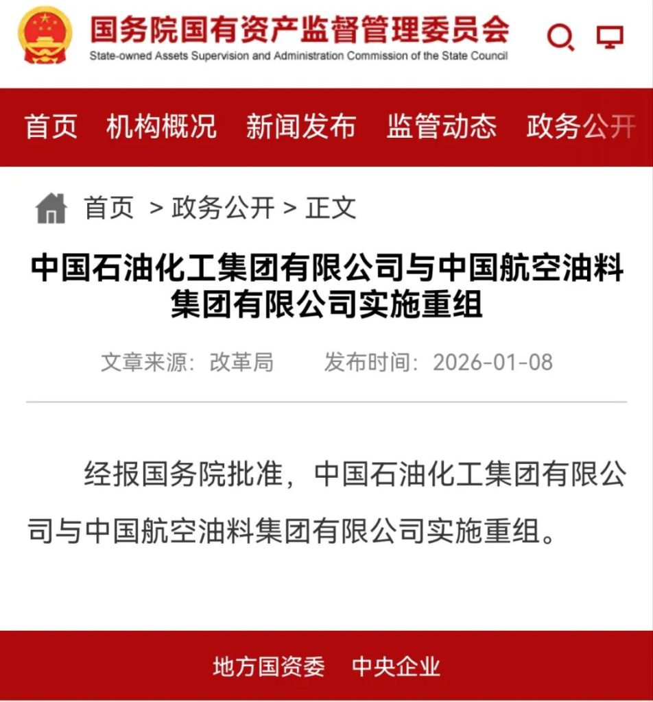 国务院国资委发布消息显示,中国石油化工集团有限公司(简称“中石化”)与中国航空油料集团有限公司(简称“中国航油”)的重组事宜,已获国务院批准。