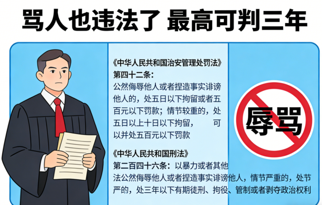 若情节严重触及刑事责任,根据《刑法》第二百四十六条,以侮辱罪或诽谤罪定罪处罚,可判处三年以下有期徒刑、拘役、管制或者剥夺政治权利。这意味着,骂人行为的后果可轻可重:轻则面临5日以下拘留或1000元以下罚款,重则拘留期限延长至10日并处罚款;若是造成极其严重的后果,比如因辱骂导致对方精神崩溃、自残甚至自杀,就会构成犯罪,最高可判处三年有期徒刑。