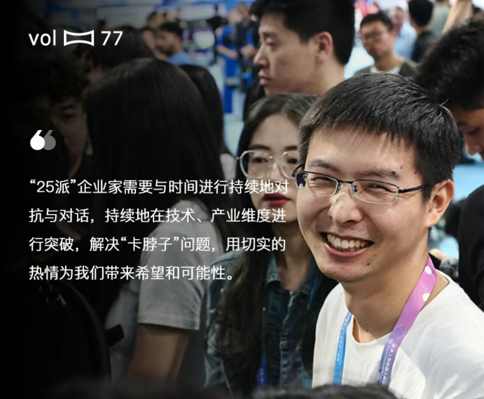 实践是检验真理的唯一标准。时间是检验成色的唯一方式。大浪淘沙、去伪存真、荡浊涤清之后,“25派”方可真正镶嵌于历史。“25派”企业家需要与时间进行持续的对抗与对话,持续地在技术维度、产业维度进行突破,解决“卡脖子”问题、解决供应链重塑和安全问题,更重要的是,用切实的热情为我们带来希望和可能性。