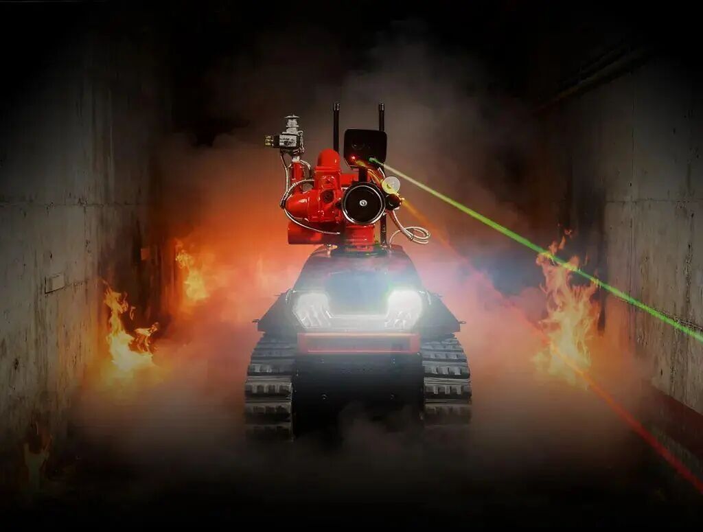 这款机器人搭载了多项先进技术,集多种硬核功能于一体:配备了自动驾驶辅助系统、AI智能视觉摄像头、高压可伸缩软管卷盘,还有6X6轮毂电机系统。机身采用特殊绝缘设计,能够在500℃到800℃的极端高温环境下正常作业,内置的喷雾系统可以在车身周围形成一层防护水膜,保障设备安全运行。同时,轮毂电机的特殊结构,让它能实现现场360度灵活旋转,哪怕是地下狭窄空间或是障碍物繁多的复杂区域,也能自如移动、顺利作业。